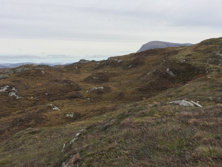 Weiter ging es in südlicher Richtung gen Kylesku, wo s’innig geliebte Pubertier ERNEUT unverzüglich eine Bergspitze erklimmen wollte. Warum sie da so schnell und vor allem allein vorneweg wollte, überlasse ich an dieser Stelle jedweder Fantasie. Nach kürzester Zeit, und ich muss es einfach annehmen, unverrichteter Dinge, flötete es mir von oben entgegen, „hier müssen wir bleiben und Suppe essen“. Da es in der Regel müßig ist, sich mit den Beweggründen fürs Pubertierhandeln beziehungsweise -denken zu beschäftigen, packte ich stante pede die Feuerkanne nebst Zubehör und einer Suppe in den Rucksack und auf ging es in luftige Höhen. Es versteht sich von selbst, dass das Pubertier für diesen Moment zum Lastentier befördert wurde. (hehehe… selbst schuld).