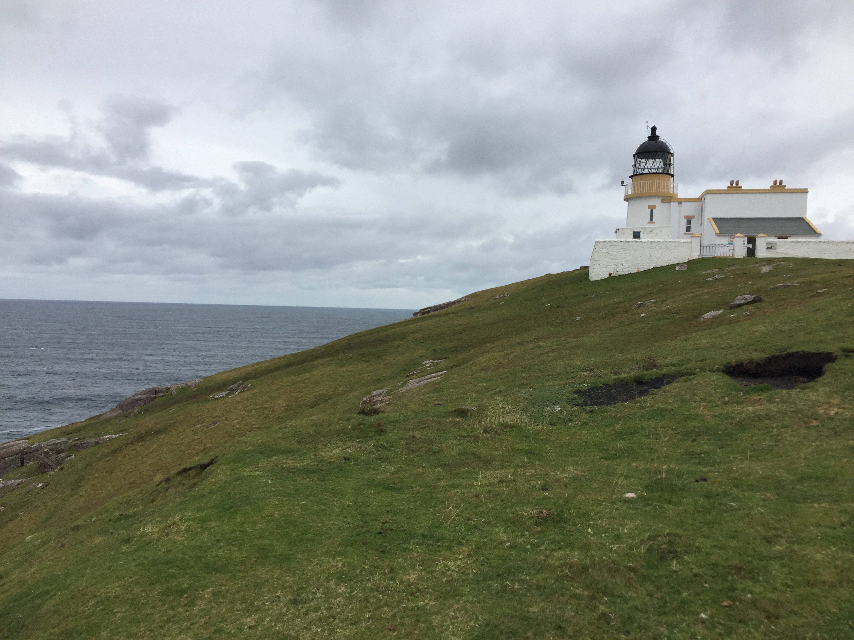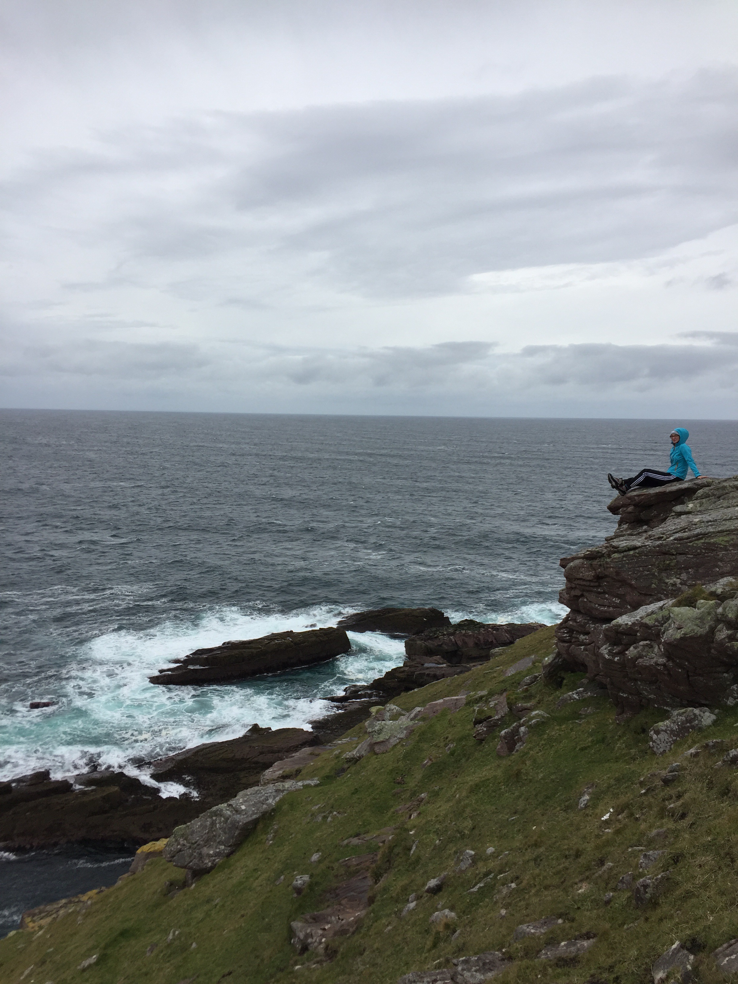 Wir haben an der Stelle die im Auto angebrachte GoPro Kamera laufen lassen (Danke Schmuddelkind 2.0). Das glaubt uns ja sonst kein 🐷. Etwa 20 den ein oder anderen zum unvermittelten Speien einladende Minuten haben wir so für die Nachwelt festgehalten. Der bessere Trampelpfad führte uns schließlich zum Stoer Lighthouse an der Steilküste und dem davor liegenden Old Man of Stoer, einem steilen Felsen vor besagter Küste.