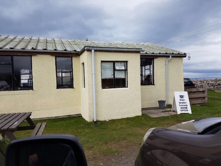 In Durness kehrte die mürrische und ausgehungerte Sippe in ein Etablissement ein, welches sich als ein Hort des Kalauerns entpuppen sollte. Wie kann man sowas am besten beschreiben? Man stelle sich einen knackigen Bungalow der frühen Siebziger Jahre vor. Ja, auch das Linoleum am Boden war echt. Hinter einem kleinen Tresen stand eine vielleicht etwas vom Leben enttäuschte Frau im nahenden (möglicherweise auch währenden) Rentenalter und harrte den Wünschen der wartenden Karavane. Als alle bestellt hatten, schlurfte unsere Gastgeberin in die nebenan gelegene Küche und … ward sehr lang nicht mehr gesehen. Der bestellte Cappucino erreichte uns nach etwa 60 Minuten, was ihn schmecken lies, als ob man aus dem Heiligen Gral höchstselbst trinken würde.