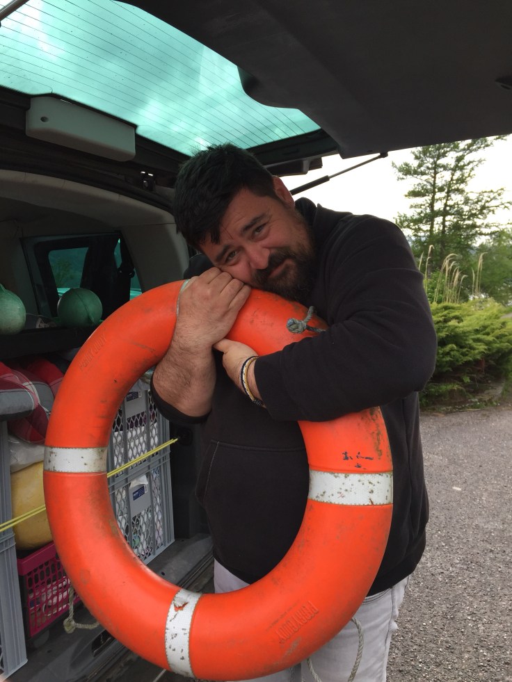 Nach Rückkehr der Unversehrtendelegation von einem schönen Steinstrand und der heroischen Errettung eines zitternd und verwaist am Wegesrand liegenden Schilds, erwachte auch das latent undichte kleine Büfetfräschen aus einem erholsamen Mittagsschlaf und alle, ob dicht oder auch nich ganz d… (ups, die Chefin schaut finster)… zu einer Tour ins nahe gelegene Ullapool, um die letzten Hongkongdollar an den Markt zu bringen. Der AV hat sich durch (sehr maskulines) Maulen und Bocken einen echten Rettungsring und zwei Minibojen bei ihrer Heiligkeit erbettelt – (Scheiß drauf, wie pussyhaft das wirkt – bald hängt’s an meiner Terrasse!!!).