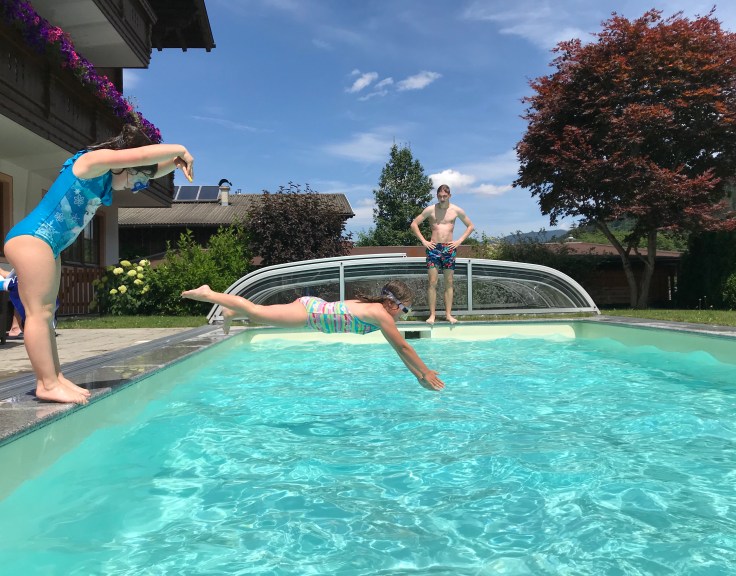 Zurück im Basislager ging’s für alle erstmal in den Pool, ok… für einen erstmal…wir haben doch alle ein kleines bisschen Fantasie…