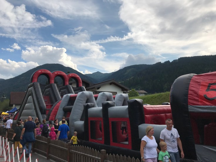 Am Abend ging es zum Tagesabschluss noch auf das Flachauer Straßenfest mit allerlei tollen Unterhaltungsmöglichkeiten für Groß und Klein…Kinderschminken, Musik, Hüpfburgen und AirbrushTattoos für Kinder… (dem AV wurde natürlich umgehend untersagt, den Lendenfrüchten ein paar hübsche Arschgeweihe zu spendieren – Spielverderber 🙄)