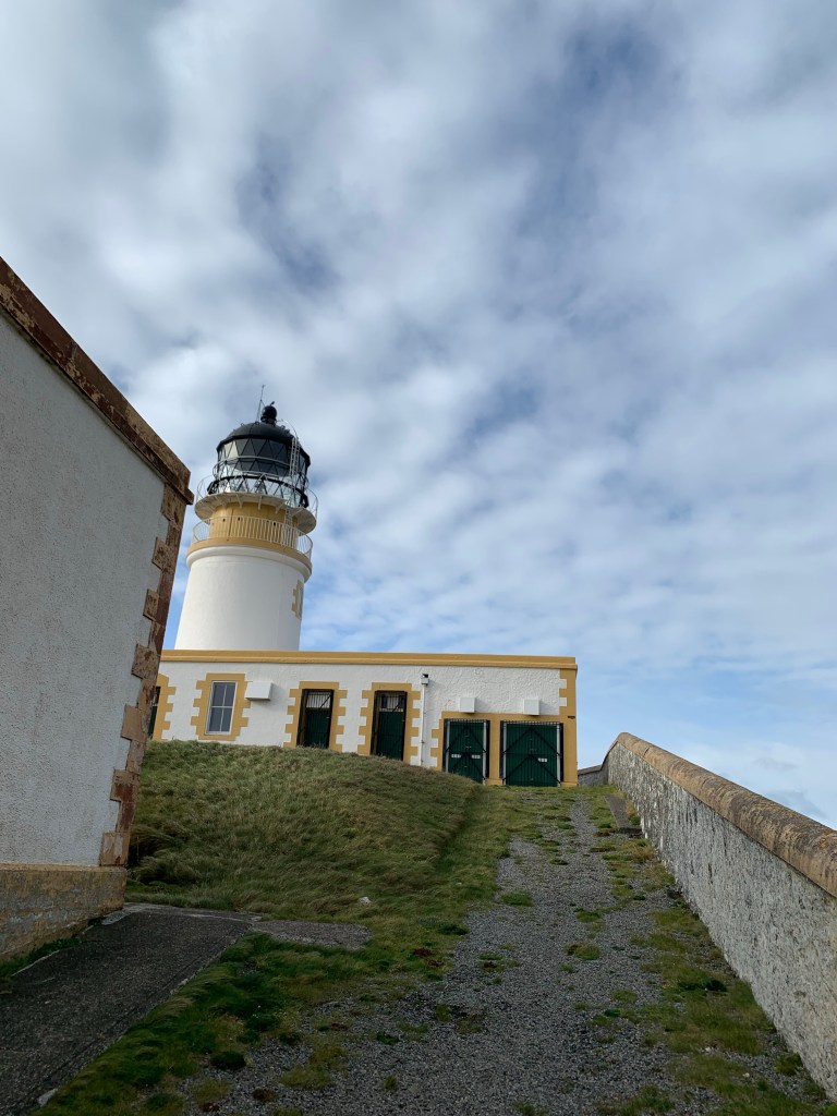 Dann gibt es die eifrigen Wanderer (und die, die gern welche wären). Die nehmen die Treppe von der Steilküste in Richtung Klippe (die vor dem Leuchtturm nochmal in den Himmel ragt) und stapfen, meist gegen die Wind, zum Leuchtturm… nicht erahnend, dass man denselben Weg wieder hoch muss (so man noch zu seinem Auto möchte).