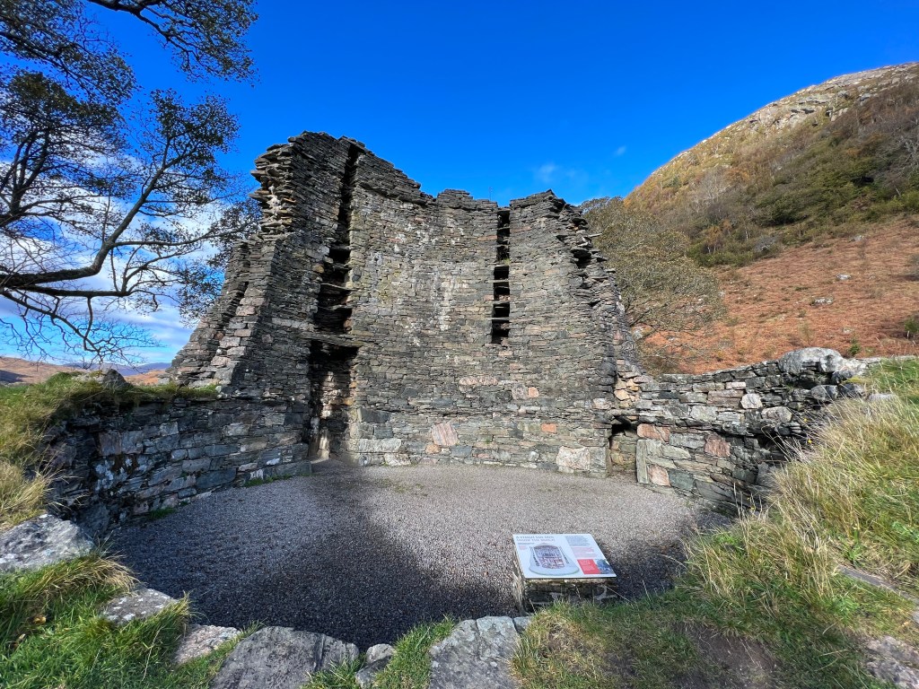 Dieser sollte insbesondere die Scheißerchen, aber auch die Restreisegruppe (die noch ein paar Tage hat – ätsch) nochmal so richtig verzaubern. Zu diesem Anlass hat der MV dem Plenum den Vorschlag gemacht, Richtung Glenelg, mal nicht auf der Isle of Skye, zu fahren und zwei gut erhaltene Brochs zu besichtigen. Zur Wiederholung, Brochs sind etwa 2.000 Jahre alte Rundbauten aus Stein. Wenige sind gut erhalten, da emsige Häuslebauer ab dem 17. Jahrhundert gern mal Materialbeschaffung für die eigenen vier Wände betrieben haben.