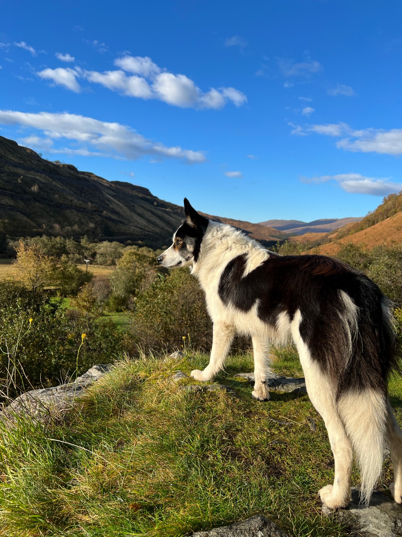 Weiter ging‘s dann Richtung Glenelg und den beiden Brochs Dun Telve und Dun Troddan. Direkt vor Dun Troddan konnte die Reisegruppe parken und wurde unmittelbar von einem ehrenamtlichen, schwanzwedelnden Reiseführer empfangen – nein, nicht der MV und nein, kein Mensch! Die Gruppe wurde von Finney begrüßt, ein Border Collie der schöner nicht sein könnte. Nachdem (nunmehr unser) Finney von allen geherzt und gestreichelt wurde, öffnete dieses schlaue Tier doch tatsächlich die obligatorische Schafspforte, begleitete uns bis zum Dun Troddan und wurde Zentrum fast aller Erinnerungsfotos.