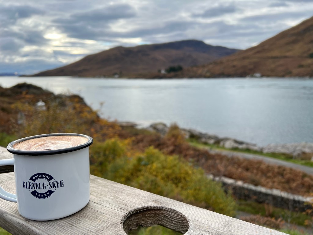 Der Vorschlag fand breite Zustimmung, also zog die Karawane los. Auf dem Hinweg wurde ein kurzer Zwischenstopp an einem hochgelegenen Aussichtspunkt über dem Basislager in Dornie eingelegt, um auch diese Gegend zu bestaunen.