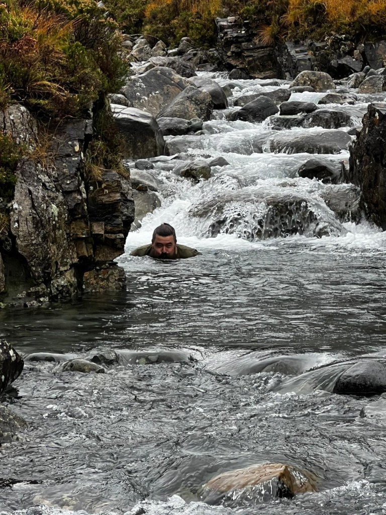 Der MotettenShoe konnte tatsächlich eine komplette Selkie-Verwandlung in dem eiskalten Bergwasser fotografieren…